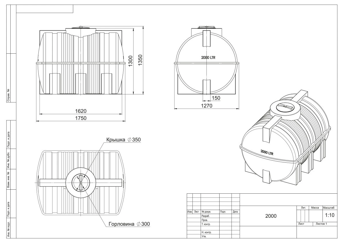 Горизонтальная цилиндрическая емкость G 2000 предназначена для хранения питьевой и технической воды, дизельного топлива.