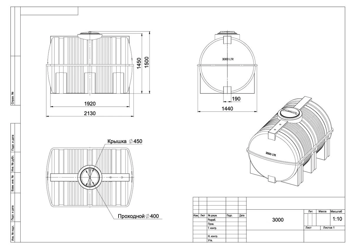 Горизонтальная цилиндрическая емкость G 3000 предназначена для хранения питьевой и технической воды, дизельного топлива.