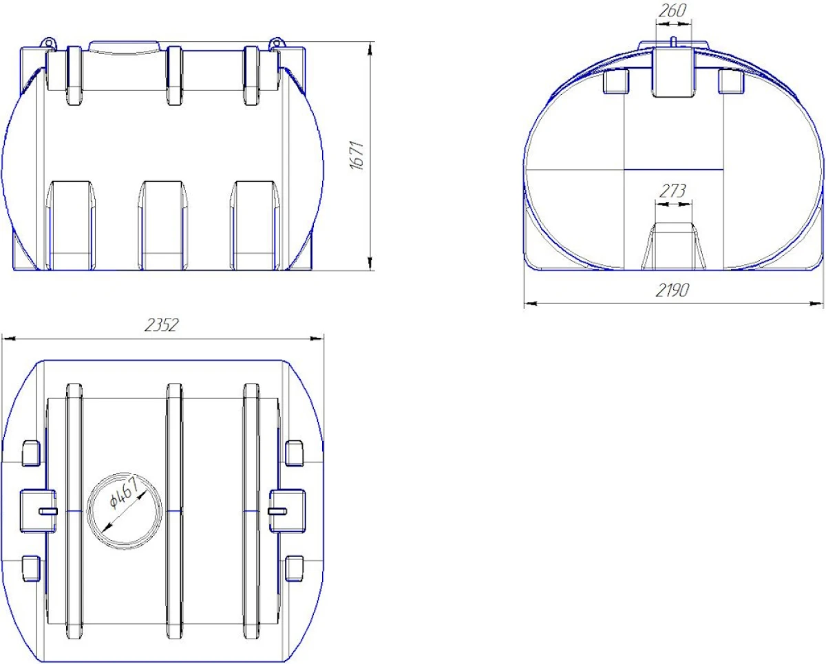 Горизонтальная усиленная емкость спроектированная нашими конструкторами таким образом, что при транспортировке в ней различных веществ она не деформируется и не лопается. Для установки в кузов или прицеп автотранспортного средства не требуется никаких дополнительных металлических обрешеток, нужно только надежно ее закрепить стяжными ремнями.