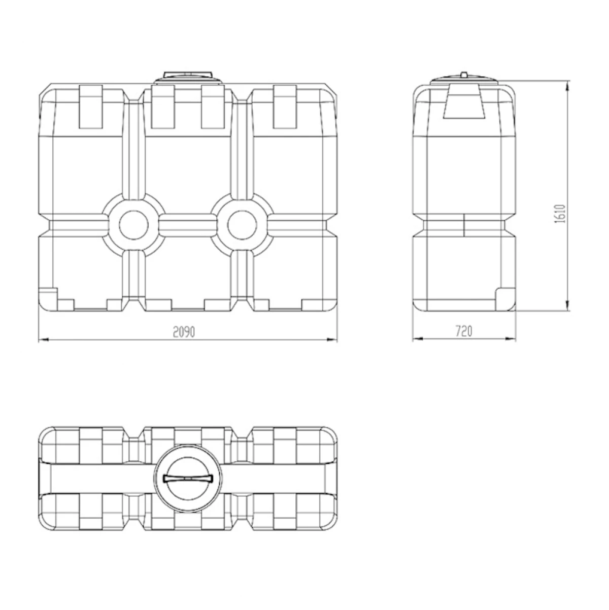 Прямоугольная вертикальная пластиковая емкость объемом 2000л предназначена для стационарного хранения и транспортировки питьевой воды, пищевых продуктов, нефтепродуктов и химических веществ.