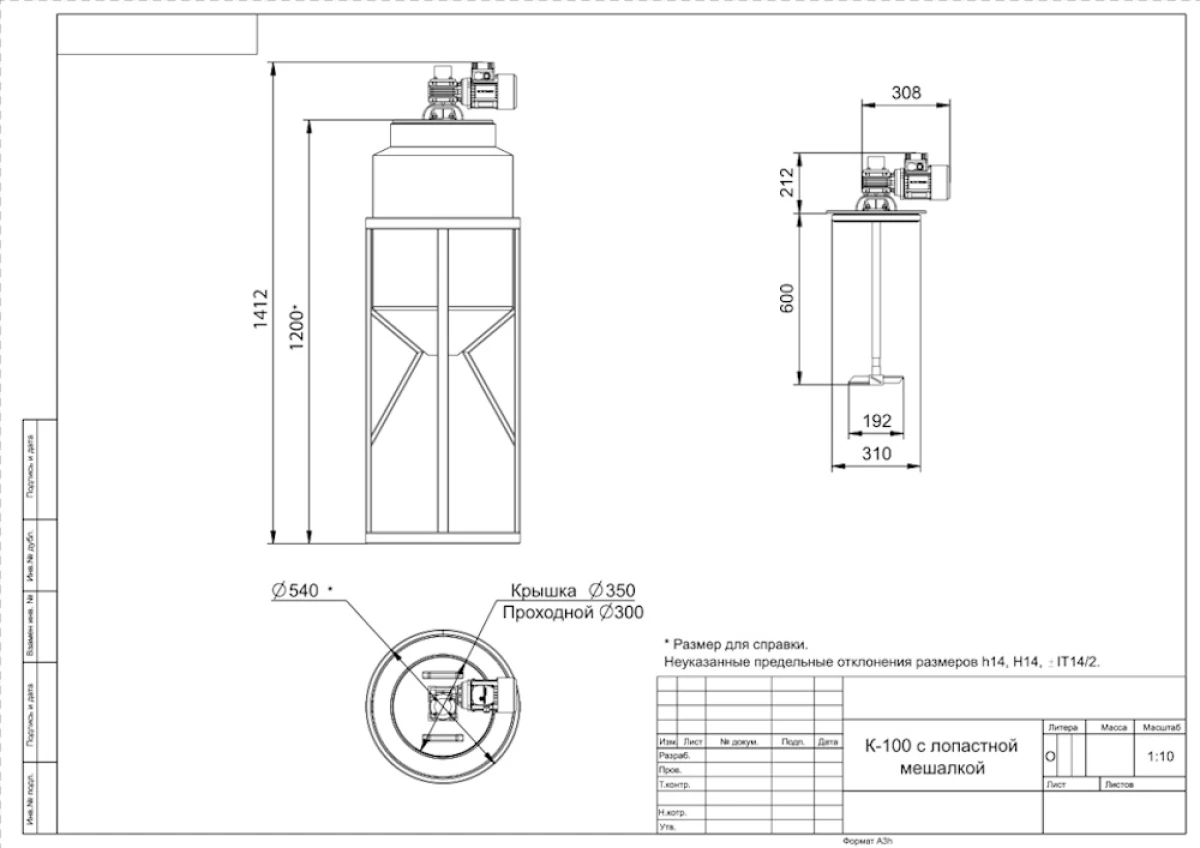 Лопастные емкости мешалки, установленные в баках, как правило, тихоходные. Они предназначены для равномерного перемешивания жидкостей с плотностью не более 1,3 г/см3, динамической вязкостью жидкой фазы ‐ 1 Ра/сек.