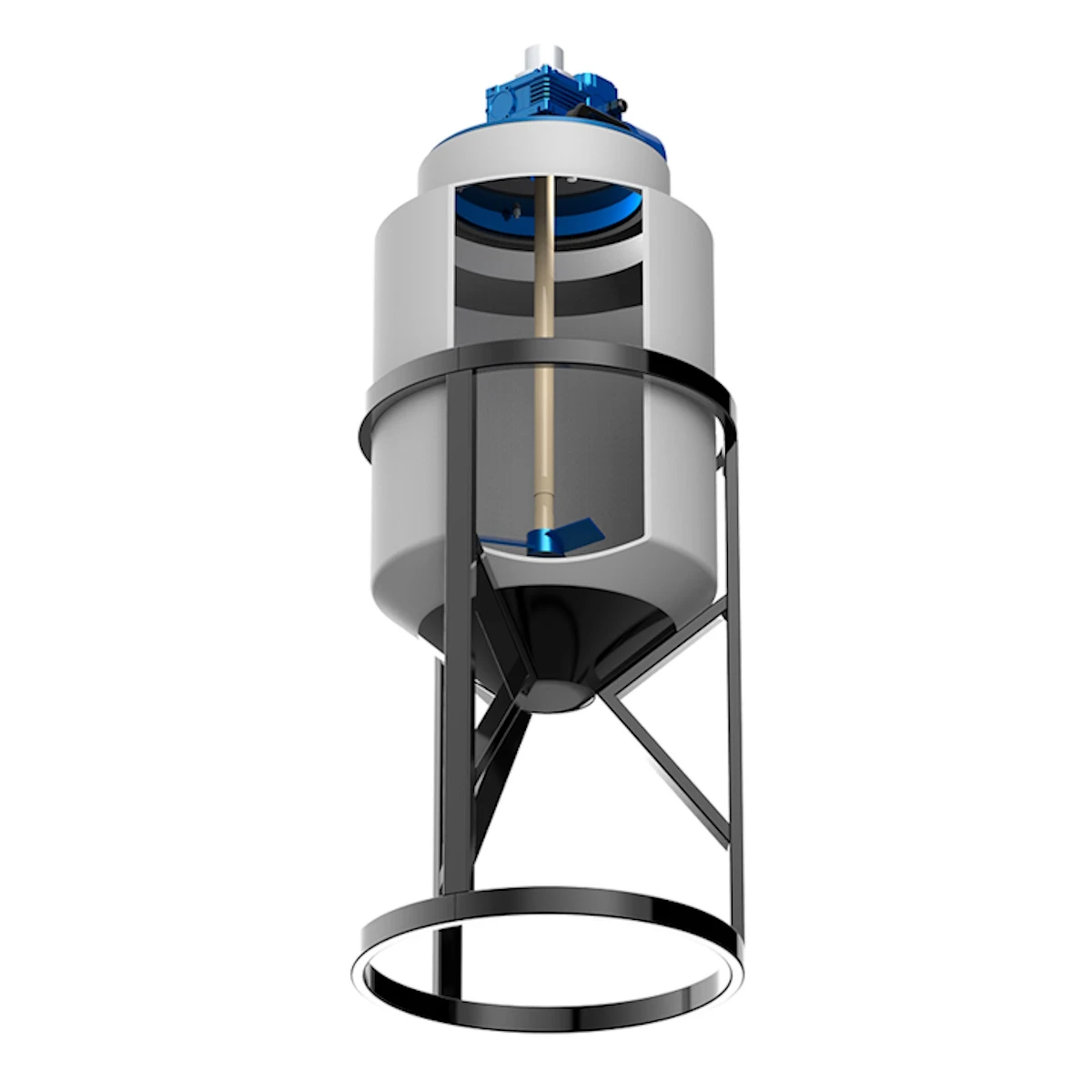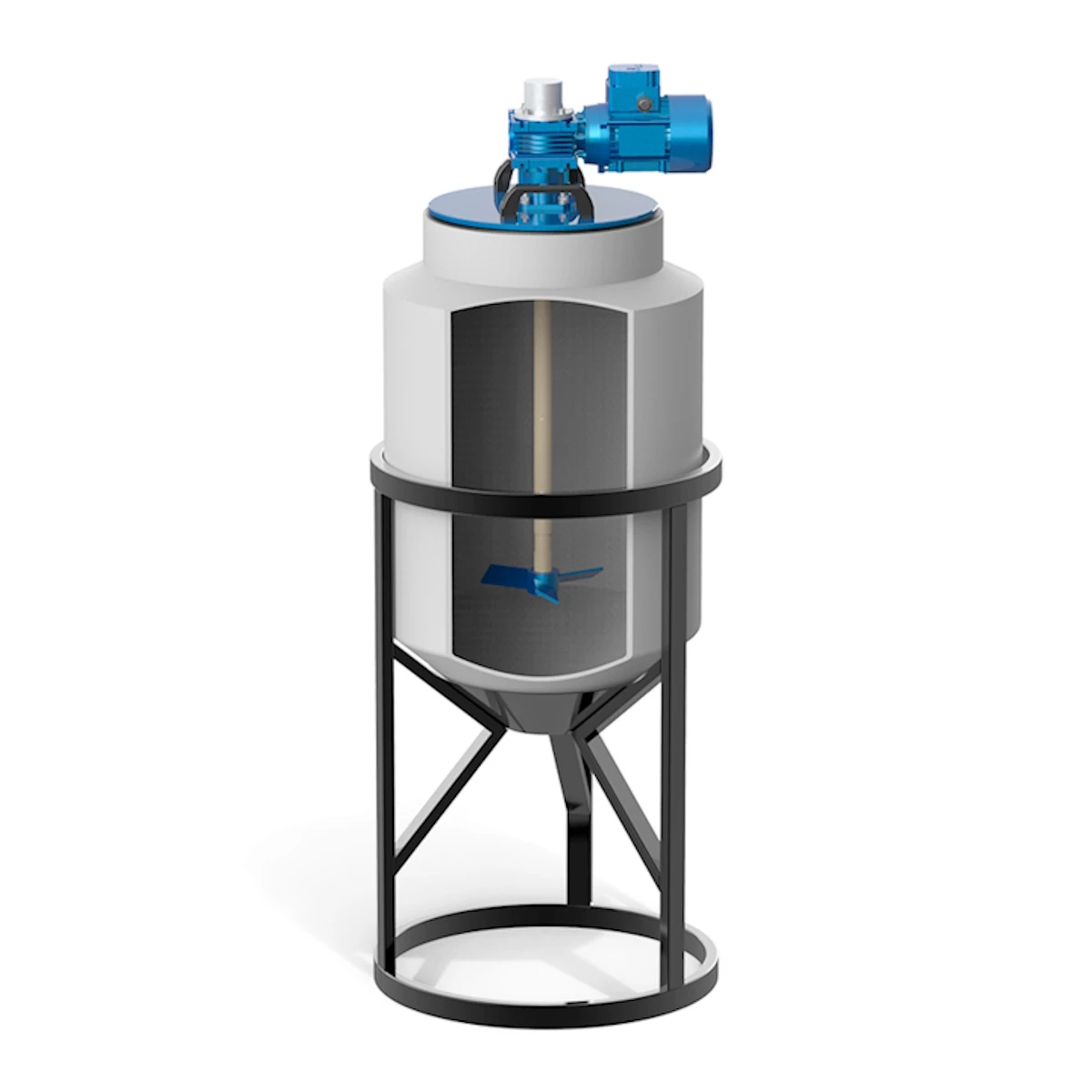 Емкость конусная с мешалкой применяются для приготовления растворов и поддержания их консистенции, создания эмульсий низкой вязкости, химических реакции или растворения в жидкой среде.