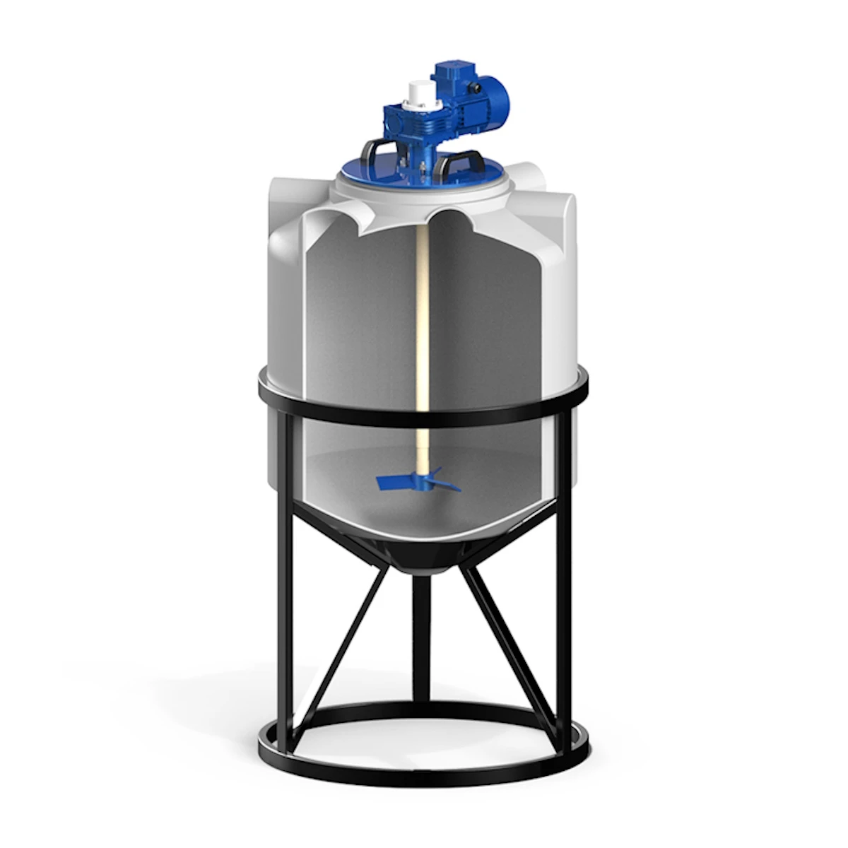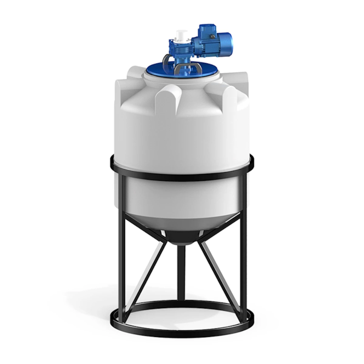 Емкость конусная с мешалкой применяются для приготовления растворов и поддержания их консистенции, создания эмульсий низкой вязкости, химических реакции или растворения в жидкой среде.