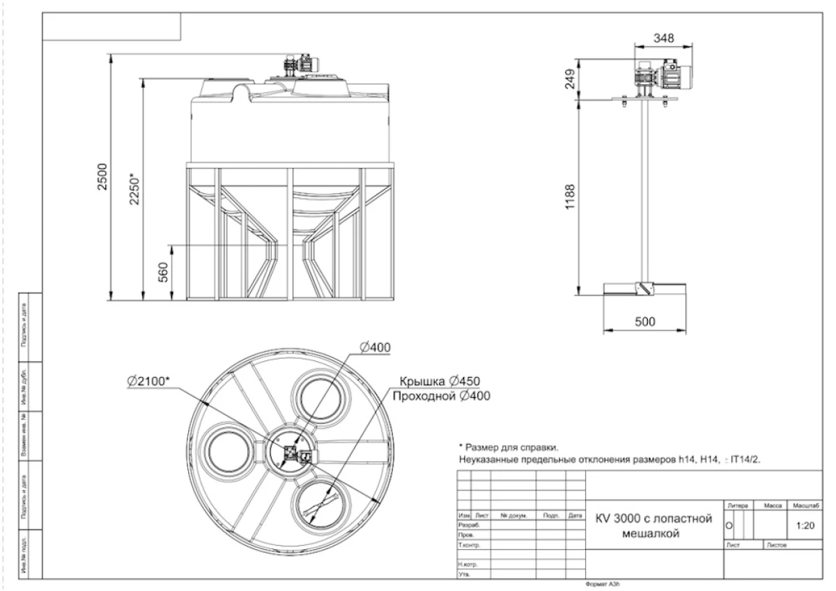 Емкость в обрешетке с лопастной мешалкой: