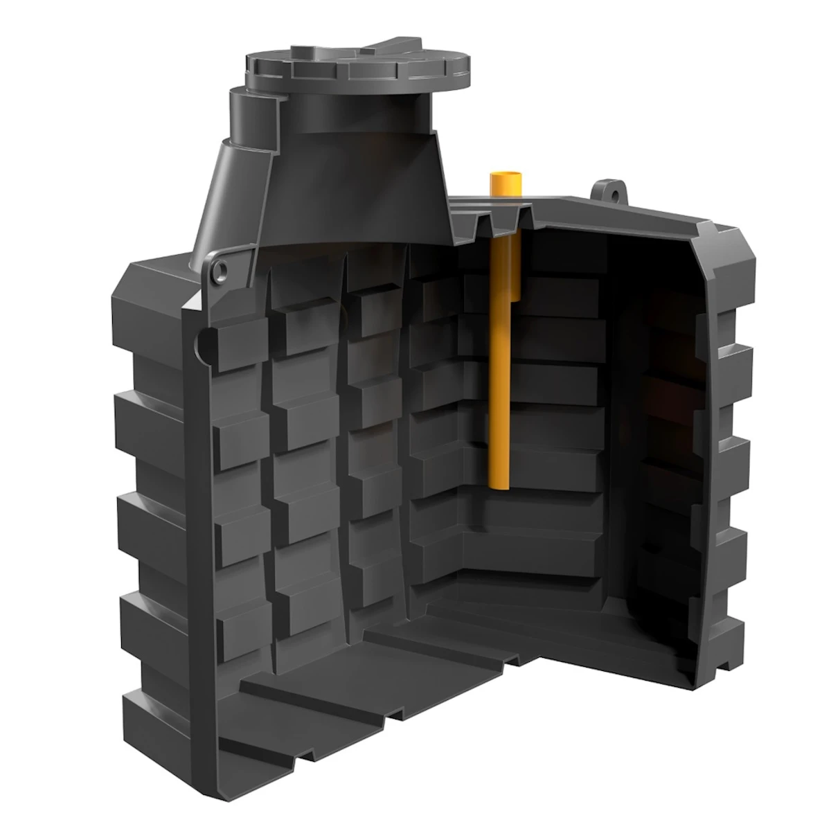 К горловине септика можно присоединить специальные доборные элементы – они образуют своего рода канализационную трубу, ведущую к накопителю, и одновременно увеличивают его вместимость. Например, если емкость резервуара равна 3700 литров, то каждый доборный элемент сможет удержать еще 270 л стоков. Кроме того, эти детали можно устанавливать одна на другую, что позволяет вкопать емкость на любую глубину.