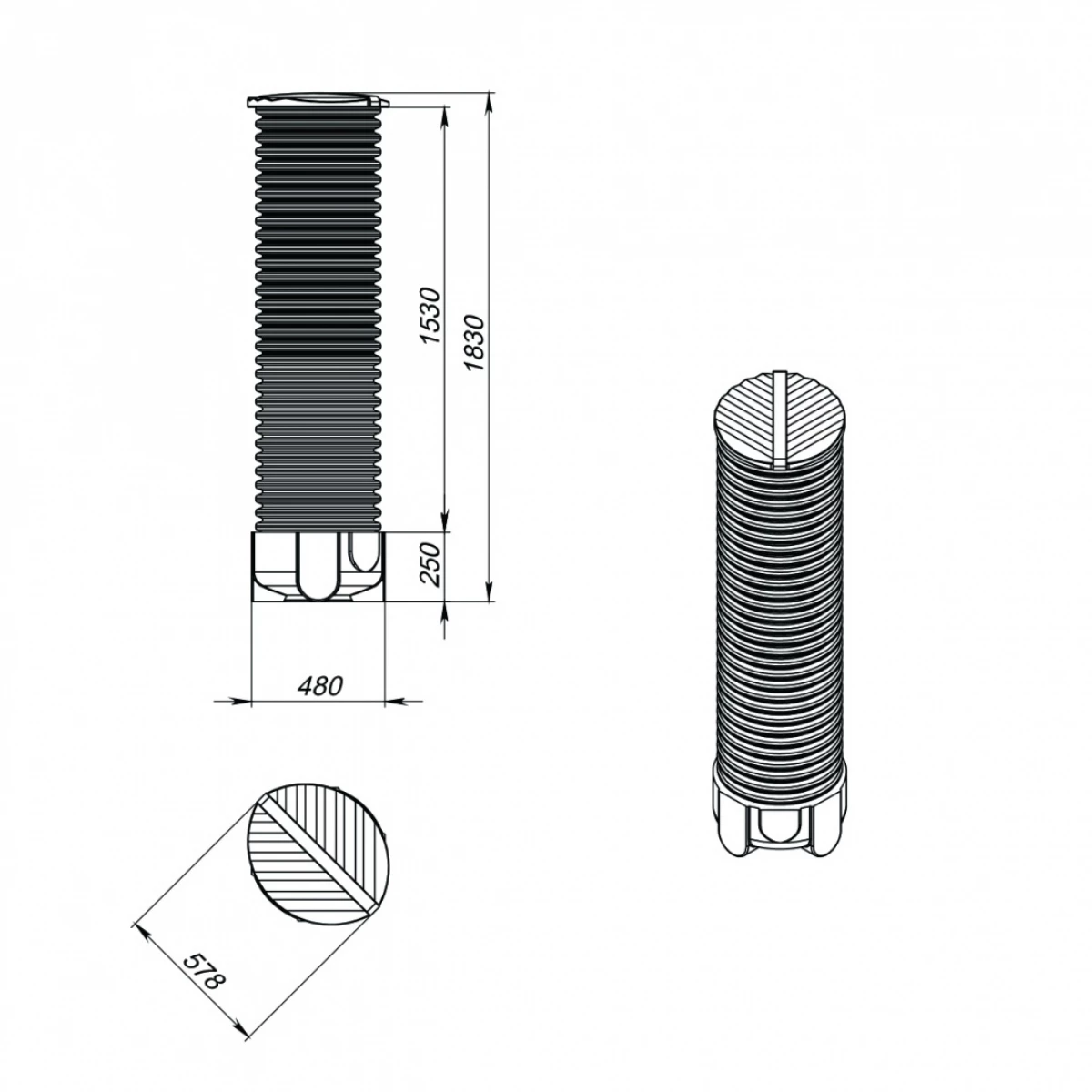 Дренажный колодец – инженерное сооружение, состоящие из двухслойной гофрированной полипропиленовой трубы с внутренним диаметром 390 мм, дном с площадками различных ориентаций и крышкой для исключения попадания поверхностных вод в колодец. Новые изделия поставляются без отверстий в дне и могут использоваться в качестве накопительного колодца. Дно колодца оборудовано площадками разной ориентации для подключения труб диаметром до 110 мм (для этого необходимо сделать соответствующие отверстия и присоединить трубы с используя манжеты). Высота колодца меняется в зависимости от применяемой трубы от 1 до 6 м. Внешний диаметр трубы - 460 мм, внутренний - 400 мм.