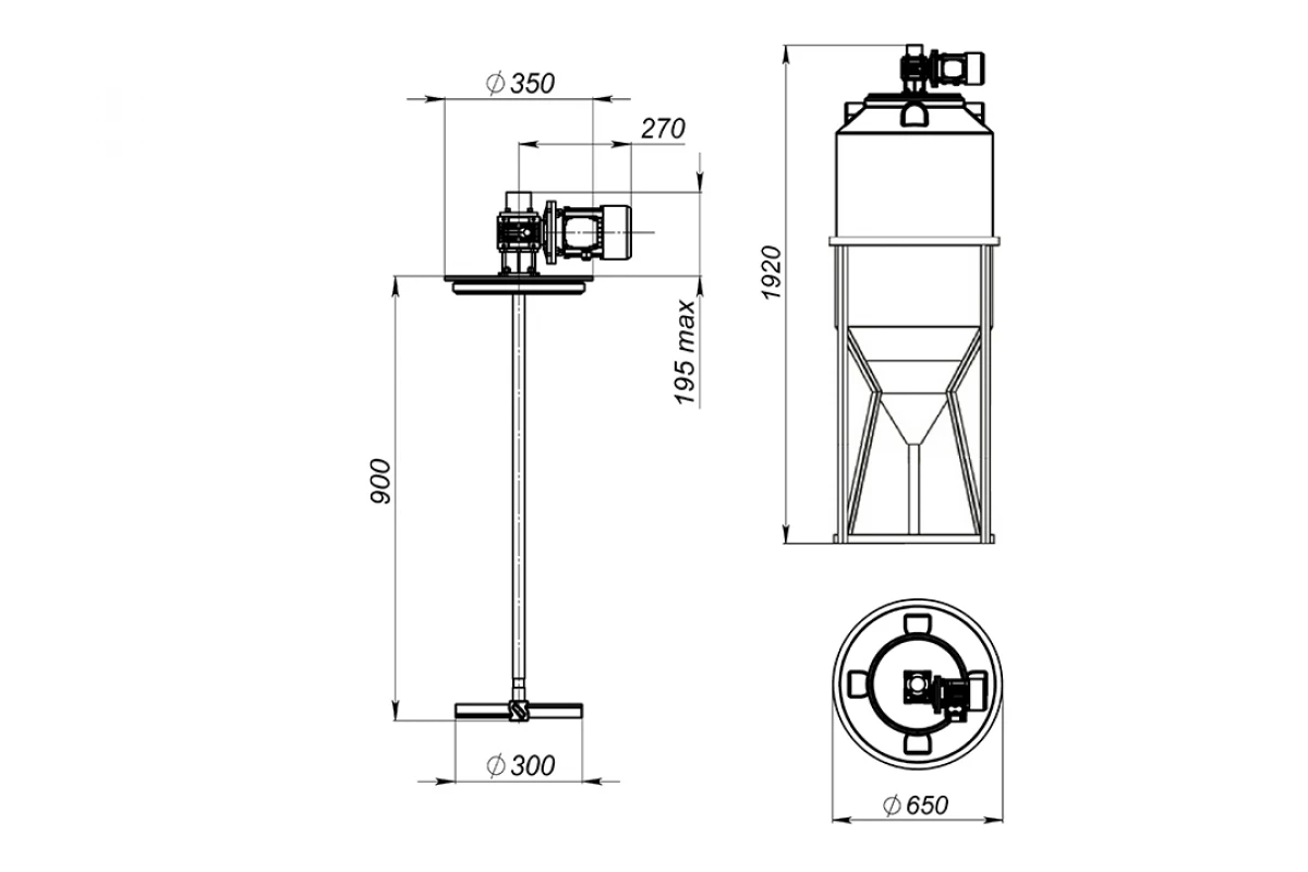 Лопастные мешалки необходимо устанавливать по центру емкости для обеспечения равномерного перемешивания раствора. Мешалки весом до 25 кг устанавливаются непосредственно на крышку емкости. Крышка также выполнена из композитного материала.