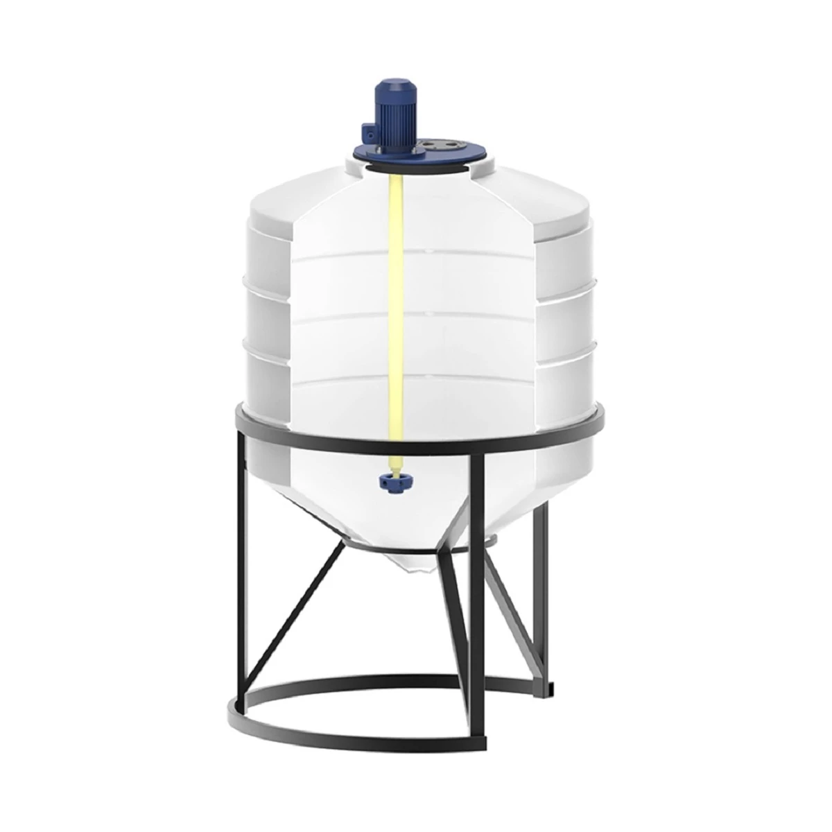 Емкость ФМ 500 литров в обрешетке имеет конусное дно, что обеспечивает полный слив жидкости без остатка. Емкости с турбинными мешалками используются в химической промышленности, водоподготовке и водоочистке для поддержания постоянной концентрации известкового молока, быстрого растворения соли, приготовления электролитов и химических реагентов. Данный тип мешалок – быстроходный. Мешалки предназначены для перемешивания жидкости с максимальной плотностью 1,3 г/см3, динамической вязкостью жидкой фазы ‐ 6 Ра/сек.