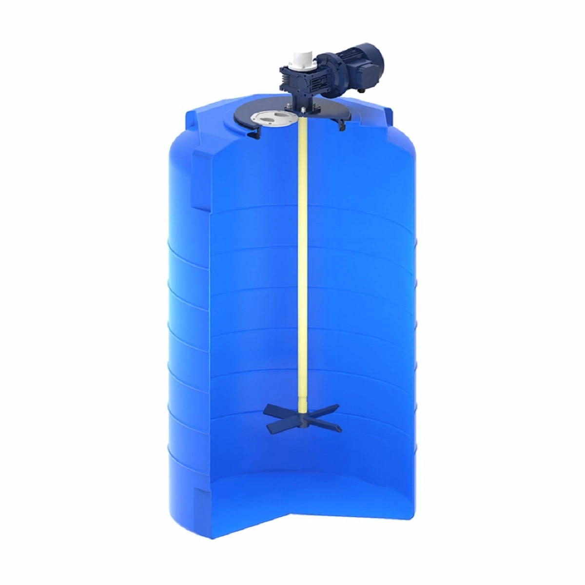 Лопастные мешалки необходимо устанавливать по центру емкости для обеспечения равномерного перемешивания раствора. Мешалки весом до 25 кг устанавливаются непосредственно на крышку емкости. Крышка также выполнена из композитного материала.