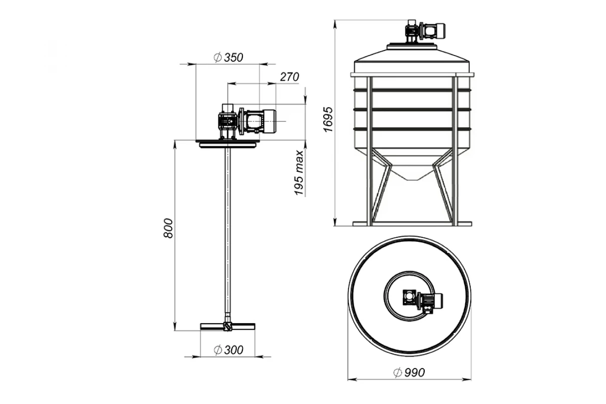 Лопастные мешалки необходимо устанавливать по центру емкости для обеспечения равномерного перемешивания раствора. Мешалки весом до 25 кг устанавливаются непосредственно на крышку емкости. Крышка также выполнена из композитного материала.