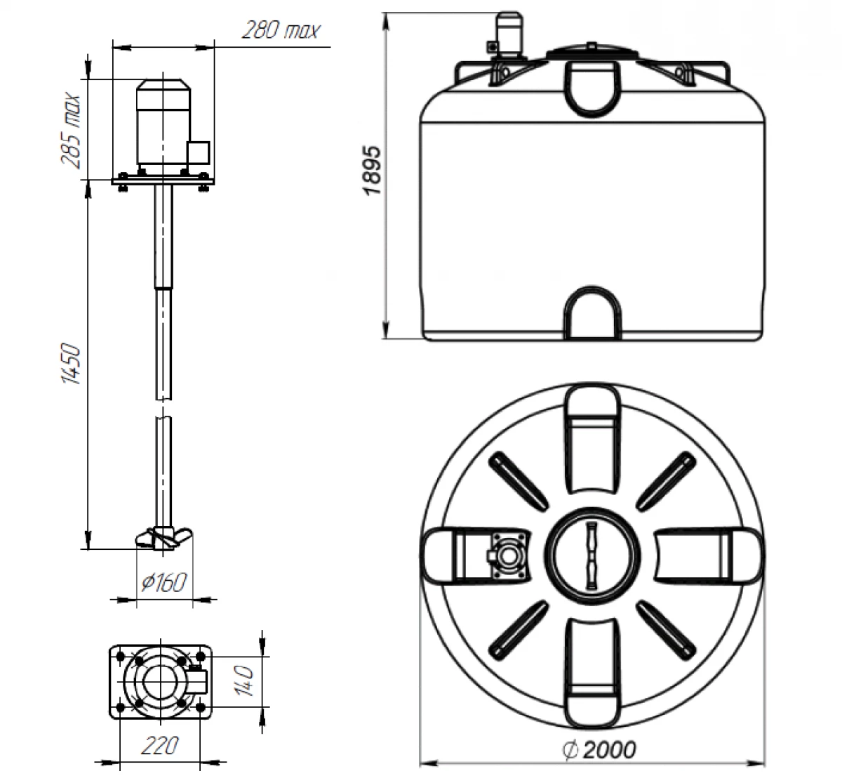 Мешалки весом до 25 кг устанавливаются непосредственно на крышку или ребра емкости. Крышка также выполнена из композитного материала.