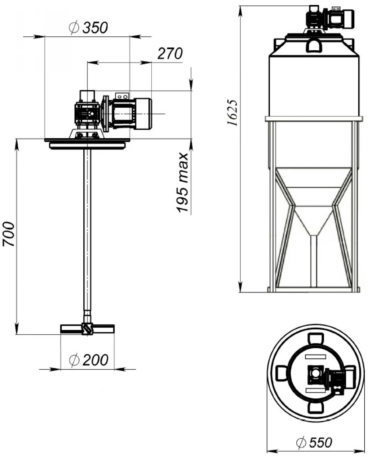 Мешалки предназначены для перемешивания жидкости с максимальной плотностью 1,3 г/см, динамической вязкостью жидкой фазы ‐ 1 Ра/сек. Данный тип мешалок тихоходный.