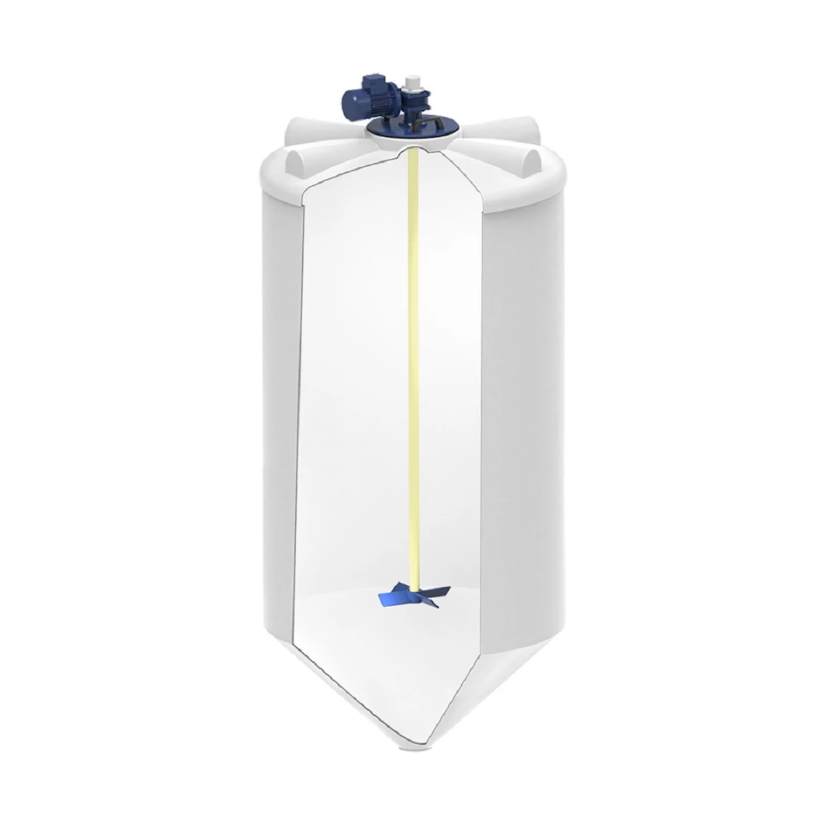 Лопастные мешалки необходимо устанавливать по центру емкости для обеспечения равномерного перемешивания раствора. Мешалки весом до 25 кг устанавливаются непосредственно на крышку емкости. Крышка также выполнена из композитного материала.