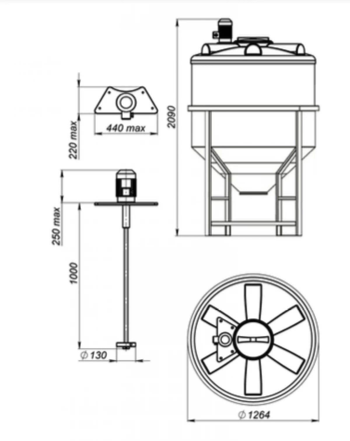Мешалки весом до 25 кг устанавливаются непосредственно на крышку или ребра емкости. Крышка также выполнена из композитного материала.