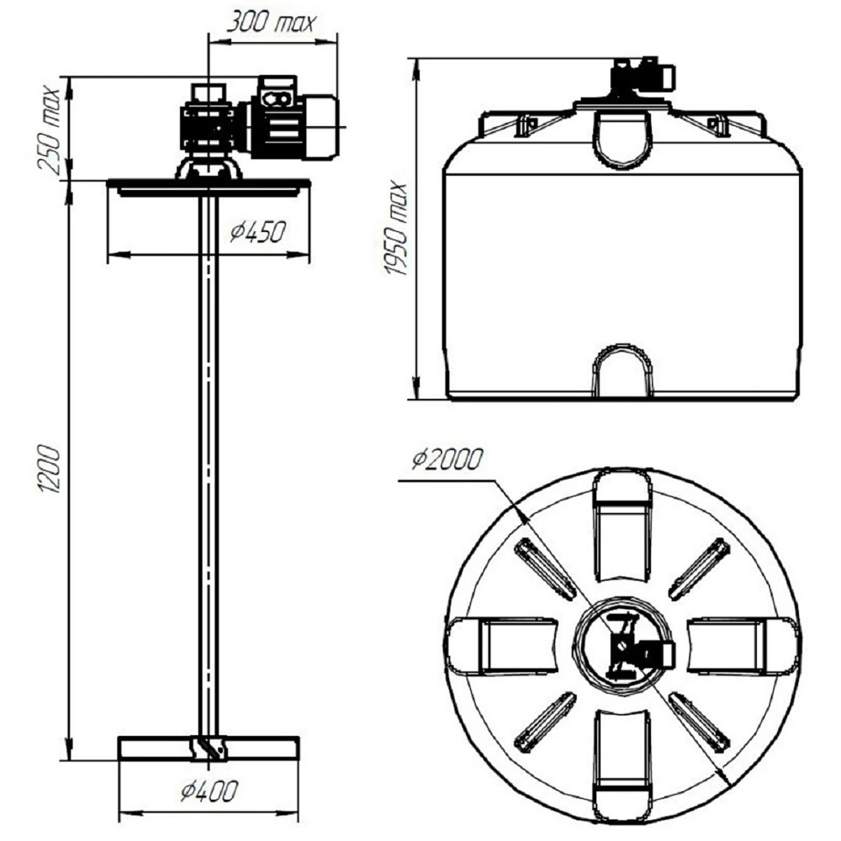 Лопастные мешалки необходимо устанавливать по центру емкости для обеспечения равномерного перемешивания раствора. Мешалки весом до 25 кг устанавливаются непосредственно на крышку емкости. Крышка также выполнена из композитного материала.