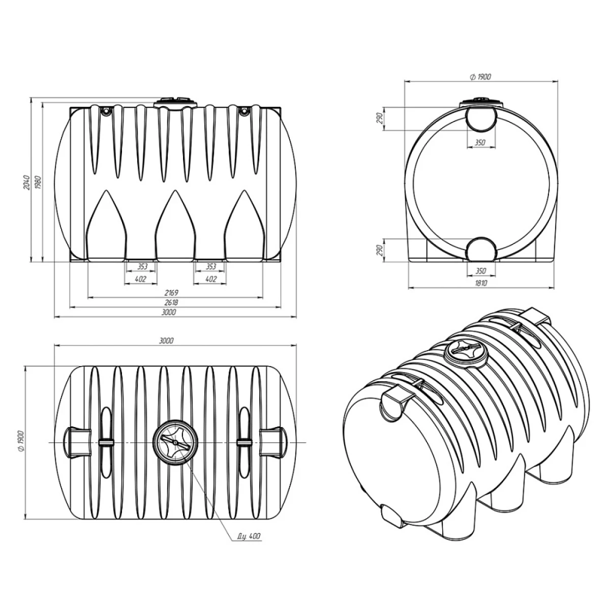 Линейка горизонтальных емкостей для КАС различного объема позволяет оптимально подобрать рабочий объем и включает емкости объемом: 2 000л; 3 000л; 5 000л; 8 000л.