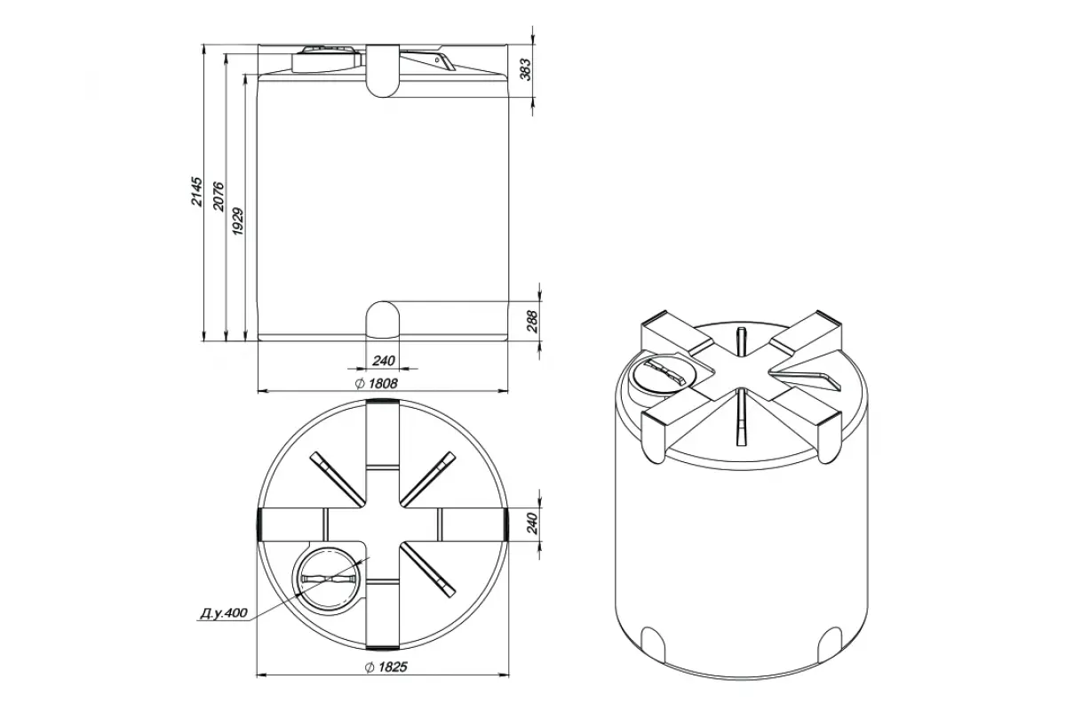 Диаметр горловины емкости составляет 400 мм, диаметр крышки 457 мм.