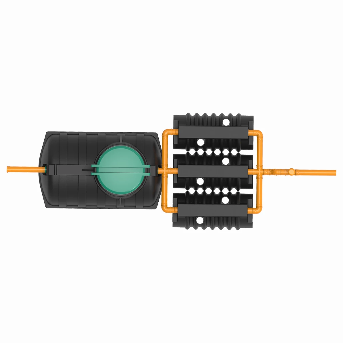 | Для использования системы только в теплое время года: Якорение септика: Поребрик (вес 150 кг) – 4 шт. Трос полипропиленовый – 25 м. Для работы системы круглый год: Колодец накопительный с насосом дренажным – 1 шт. Шланг напорный армированный d 25 – по необходимости. Муфта уплотнительная резиновая 123х110 – 1 шт. Труба канализационная 110х150 (серая) – 1 шт. | Последовательное расположение блоков биофильтра: Доп. материалов не требуется. Параллельное расположение блоков биофильтра: Отвод 110 на 900 - 4 шт. Крестовина 110х110 – 2 шт. Труба 110х1000 – 4 шт. | Труба 110 для наружной канализации – по необходимости. Утеплитель – по необходимости. Песок 10-12 куб. м. – по необходимости.Отвод 110 на 450 - 2 шт. Тройник 110х110 на 900 - 2 шт. Труба 110х1000 – 2шт. Труба 110х500 – 1 шт. Зонт вентиляционный 110 – 1шт. |